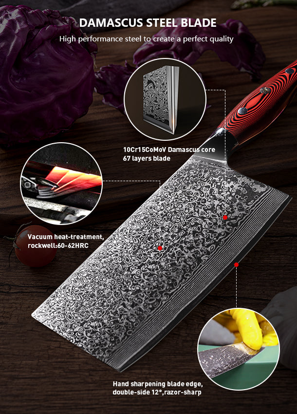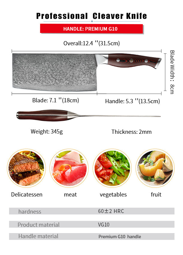 FUJUNI HF Series Damascus Steel 7" Cleaver Knife