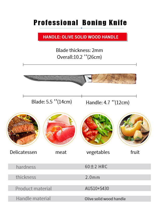 FUJUNI FQ Series Damascus Steel 5.5" Boning Knife