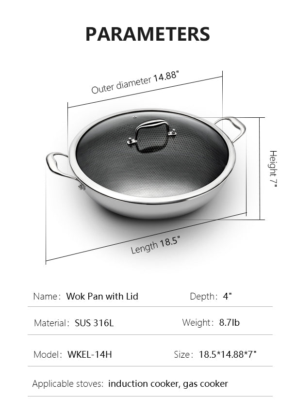 FUJUNI 14" Hybrid Non-stick Wok With Lid