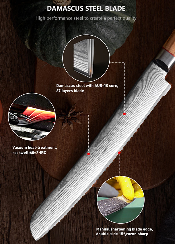 FUJUNI BD Series Damascus Steel 9" BreadKnife